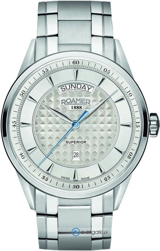 Zegarek męski 508293 41 15 50 marki Roamer należy do rodziny Superior Day Date. Stylu dodaje wysokiej klasy tarcza w kolorze szarym. Koperta jest w kolorze stalowym szeroka jest na 42 mm oraz ma grubość 9 mm - charakteryzuje się okrągłym kształtem.