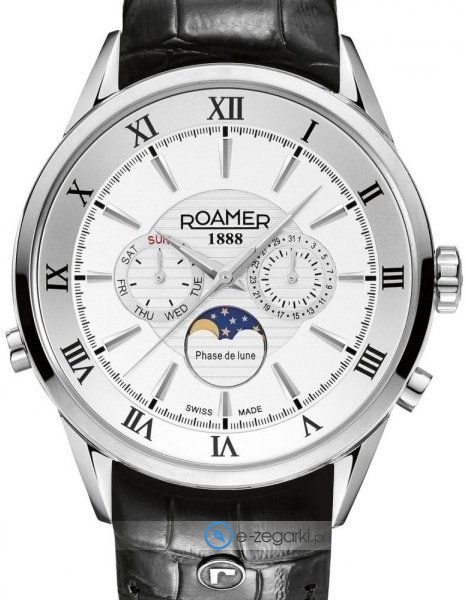 Zegarek męski 508821 41 13 05 marki Roamer to idealne połączenie funkcjonalności i ciekawego wzornictwa. Model ten w gamie pozostałych zegarków tego producenta występuje w kolekcji Superior Moonphase. Charakteru nadaje wysokiej klasy cyferblat w kolorze białym. Koperta jest w kolorze stalowym szeroka jest na 43 mm oraz ma grubość 11 mm - w kształcie okrągłym.