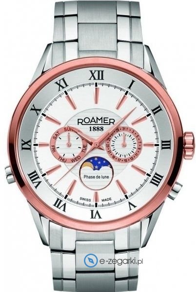 Model męski 508821 49 13 50 marki Roamer z serii Superior Moonphase. Niebanalną budowę czasomierza uzyskano dzięki tarczy w kolorze szarym. Koperta szeroka jest na 43 mm - posiada okrągły kształt.