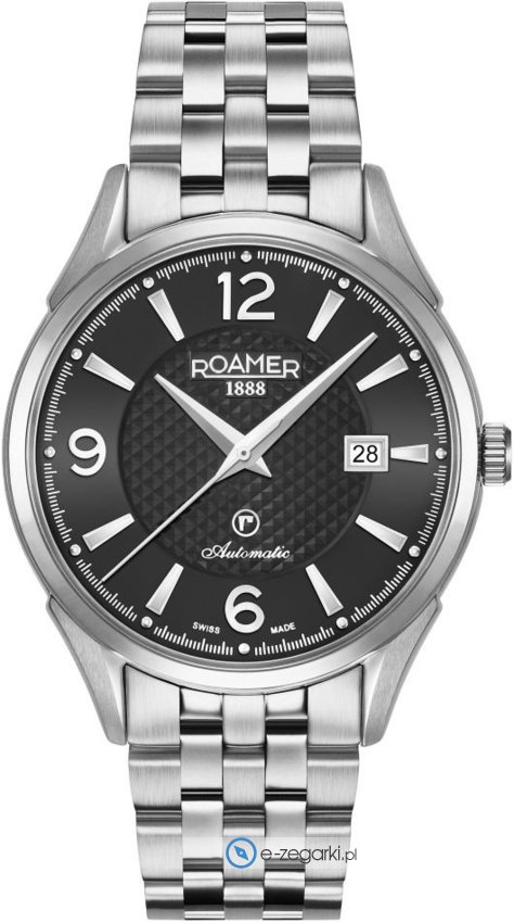 Model męski 550660 41 54 50 marki Roamer z rodziny Swiss Matic. Tarcza zegarka w kolorze czarnym. Koperta jest w kolorze stalowym szeroka jest na 41 mm - cechuje się okrągłym kształtem.