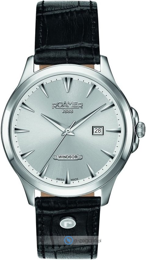 Zegarek męski 705856 41 05 07 marki Roamer z rodziny Windsor. Nieschematyczny wygląd czasomierza osiągnięto dzięki tarczy w kolorze szarym. Koperta jest ozdobiona kolorem stalowym szeroka jest na 40 mm oraz ma grubość 7 mm - wyróżnia się okrągłym kształtem.