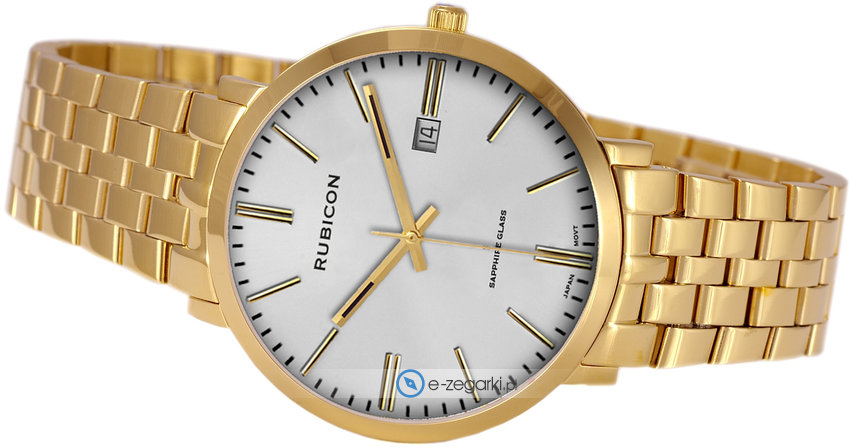 Zegarek RBN190 zasilany jest za pomocą baterii kwarcowej. Wytrzymała bransoleta koloru złotego wytworzona ze stali nierdzewnej zapewnia powyższoną jakość i trwałość.