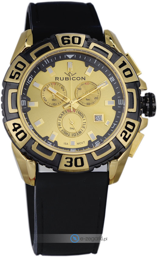 Model RNFC95TIGX05AX marki Rubicon to elegancki zegarek naręczny męski, który jest wyposażony w pomysłowe rozwiązania i funkcje. Wysokiej trwałości cyferblat zegarka ozdobiono złotym kolorem. Zegarek ten prezentuje aktualny czas w formacie analogowym dzięki czemu odczyt jest bardzo łatwy. Koperta jest pokryta kolorem czarnym szeroka jest na 38 mm - cechuje się okrągłym kształtem.