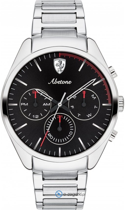 Model 0830505 Abetone marki Scuderia Ferrari to stylowy zegarek naręczny męski, który posiada pomysłowe rozwiązania i funkcje. Koperta szeroka jest na 42 mm oraz ma grubość 11 mm.