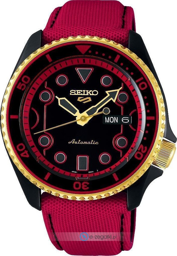 Zegarek SRPF20K1 Street Fighter KEN posiada mechanizm automatyczny nakręcający się od ruchu ręki. Pasek parciany koloru czerwonego wykonany jest z wysokiej jakości skóry.