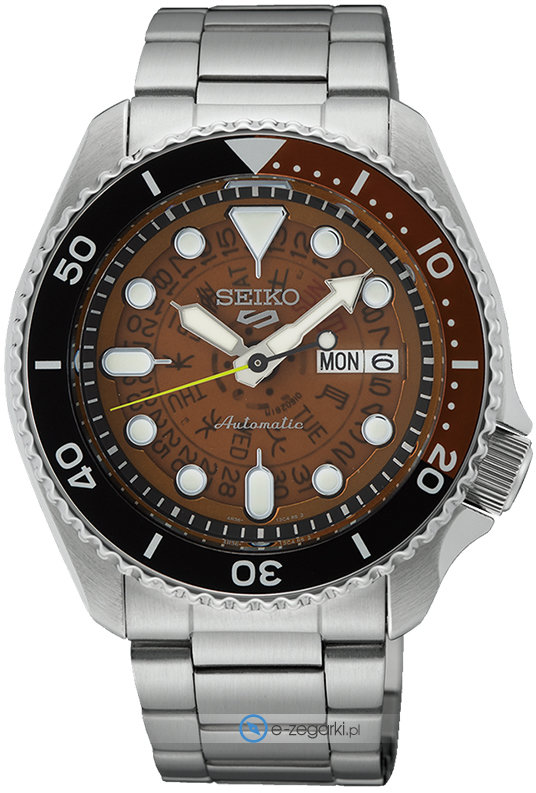 Męski zegarek Seiko SRPJ47K1 to zegarek, który dzięki swemu wzornictwu zawsze będzie prezentował się dobrze. Wysokiej jakości tarczę zegarka ozdobiono brązowym kolorem. Pokazana metodą analogową aktualna godzina jest czytelna i prosta do odczytania. Koperta została pokryta kolorem srebrnym szeroka jest na 43 mm oraz ma grubość 13 mm - charakteryzuje się okrągłym kształtem.