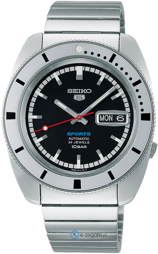 Męski zegarek SRPL05K1 z serii Seiko 5 Sports marki Seiko to połączenie estetyki i oryginalnych funkcji. Cyferblat zegarka jest w kolorze czarnym. Zaprezentowana metodą analogową aktualna godzina jest czytelna i prosta do sprawdzenia. Koperta w barwach koloru srebrnego szeroka jest na 39 mm oraz ma grubość 12 mm - w kształcie okrągłym.