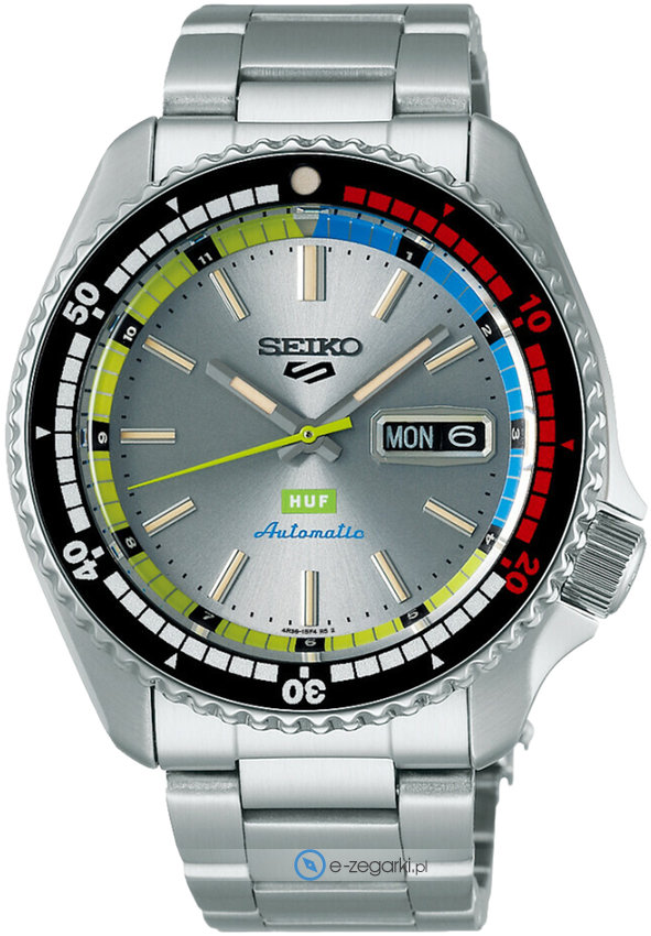 Zegarek męski SRPL33K1 marki Seiko to dobre połączenie funkcjonalności i ciekawego designu. Model ten należy do kolekcji Seiko 5 Sports. Charakter zapewnia wysokiej klasy tarcza w kolorze srebrnym. Godzina prezentowana jest w sposób analogowy co bez trudu pozwala ją odczytać. Koperta jest ozdobiona kolorem srebrnym szeroka jest na 42 mm oraz ma grubość 13 mm - charakteryzuje się okrągłym kształtem.