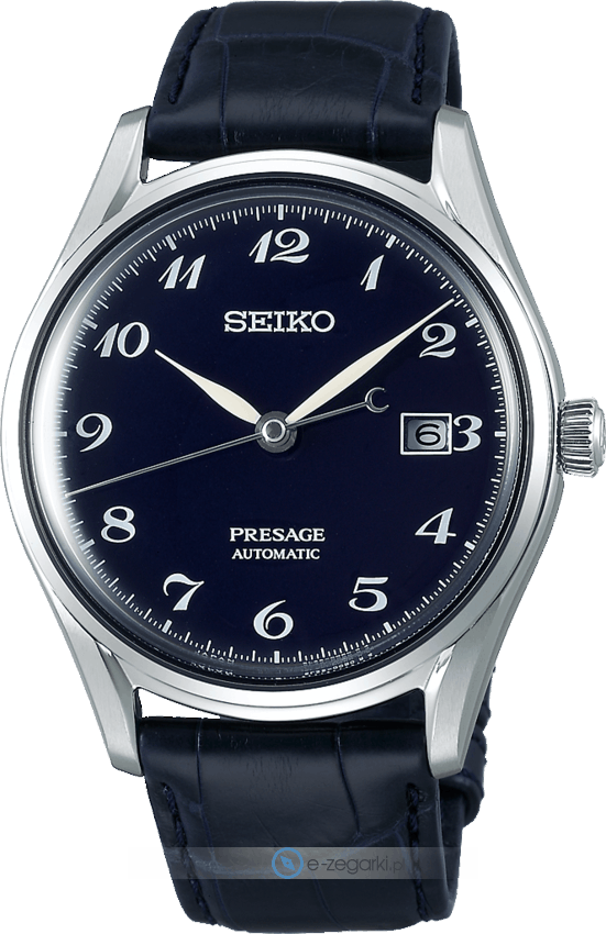 Został SJE077J1 wyposażony w mechanizm automatyczny, który nakręca się poprzez ruch ręki. Pasek jest w kolorze granatowym zrobiony jest z wysokiej jakości skóry gwarantującej trwałość i komfort noszenia.