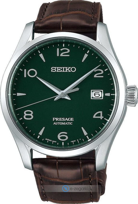 Męski zegarek SPB111J1 z serii Seiko Presage marki Seiko to połączenie estetyki oraz nieprzeciętnych funkcji. Wysokiej jakości tarczę zegarka pokryto zielonym kolorem. Zegarek ten pokazuje godzinę w formacie analogowym dzięki temu odczyt jest intuicyjny. Koperta jest w kolorze stalowym szeroka jest na 40.5 mm oraz ma grubość 12.4 mm - posiada okrągły kształt.