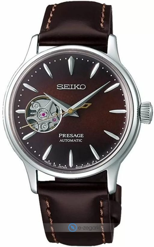Męski zegarek SSA783J1 z serii Seiko Presage marki Seiko to połączenie estetyki oraz nowatorskich funkcji. Tarcza zegarka w kolorze brązowym. Godzina pokazywana jest w sposób analogowy co intuicyjnie pozwala ją odczytać. Koperta jest w kolorze srebrnym szeroka jest na 34 mm oraz ma grubość 11 mm - posiada okrągły kształt.