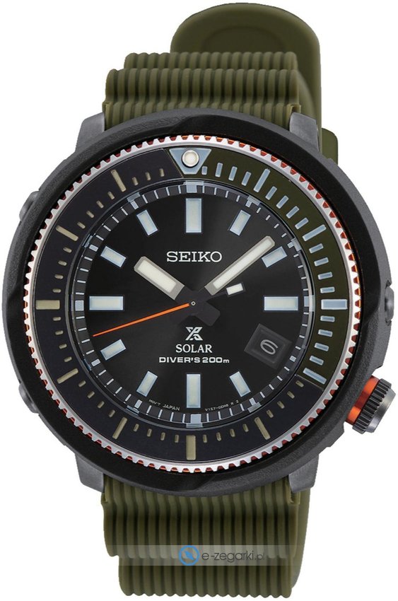 Zegarek SNE547P1 został wyposażony w mechanizm solarny zasilany jakimkolwiek źródłem światła. Pasek w odcieniach koloru zielonego zrobiony jest z wysokiej jakości tworzywa sztucznego.