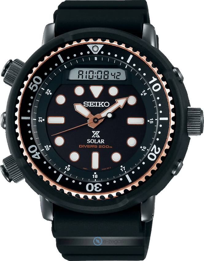 Zegarek męski SNJ028P1 zalicza się do serii Seiko Prospex marki Seiko. Styl zapewnia wysokiej jakości cyferblat w kolorze czarnym. Zegarek ten prezentuje aktualny czas w formacie analogowo - cyfrowym dzięki czemu odczyt jest bardzo łatwy. Koperta w odcieniach koloru czarnego szeroka jest na 47,8 mm oraz ma grubość 13,8 mm - ma okrągły kształt.
