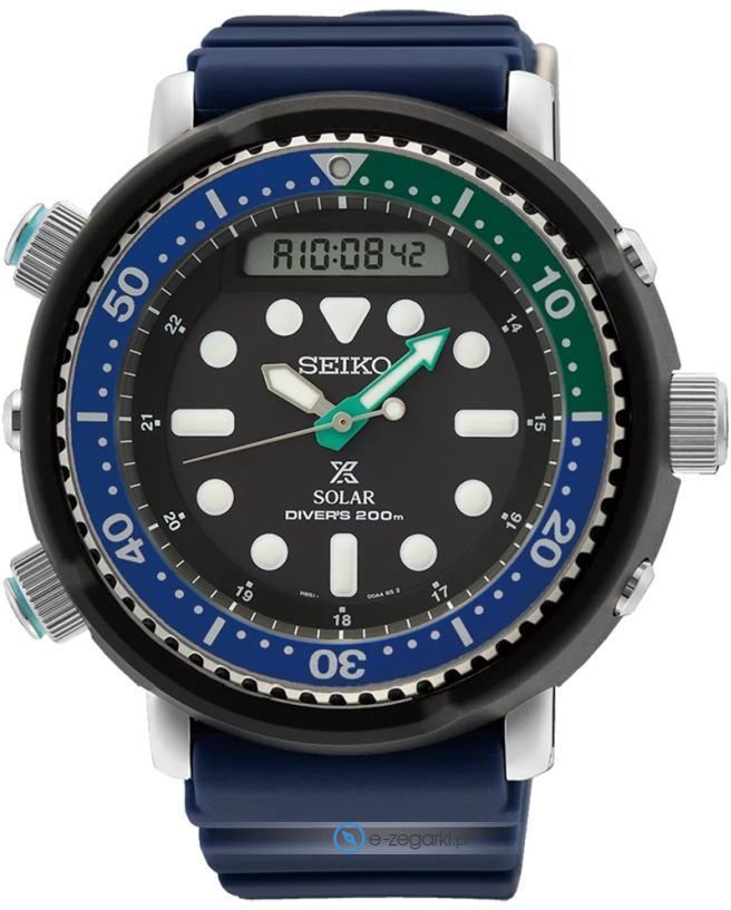 Zegarek męski SNJ039P1 marki Seiko należy do serii Seiko Prospex. Charakter zapewnia wysokiej klasy cyferblat w kolorze czarnym. Zegarek ten prezentuje godzinę w formacie analogowo - cyfrowym dzięki temu odczyt jest bezproblemowy. Koperta w barwach koloru czarnego szeroka jest na 48 mm oraz ma grubość 14 mm - ma okrągły kształt.