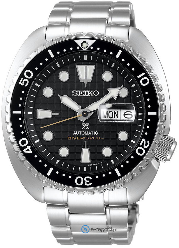 Męski zegarek SRPE03K1 z serii Seiko Prospex marki Seiko to połączenie estetyki oraz nowatorskich funkcji. Tarcza zegarka w kolorze czarnym. Aktualna godzina pokazywana jest w sposób analogowy co niezmiernie łatwo pozwala ją odczytać. Koperta została pokryta kolorem srebrnym szeroka jest na 45 mm oraz ma grubość 13 mm - charakteryzuje się okrągłym kształtem.