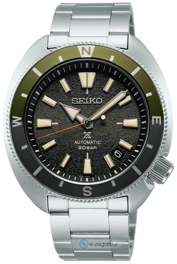 Zegarek męski SRPK77K1 marki Seiko to dobre połączenie funkcjonalności i modnego wzornictwa. Model ten zalicza się do serii Seiko Prospex. Cyferblat zegarka jest w kolorze zielonym. Aktualna godzina prezentowana jest w sposób analogowy co intuicyjnie pozwala ją odczytać. Koperta jest w kolorze srebrnym szeroka jest na 42 mm oraz ma grubość 12 mm - ma okrągły kształt.