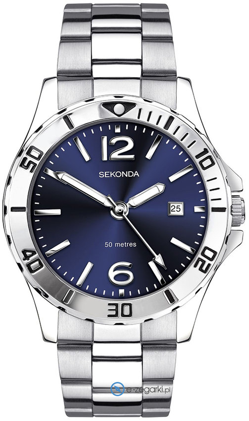 Zegarek męski 1500.00 marki Sekonda to ciekawa propozycja dla ludzi ceniących sobie dbałość o szczegóły a także sprawne działanie mechanizmów. Wysokiej trwałości cyferblat zegarka pokryto niebieskim kolorem. Pokazana metodą analogową bieżąca godzina jest czytelna i łatwa do odczytania. Koperta jest w kolorze srebrnym szeroka jest na 43 mm oraz ma grubość 10 mm - w kształcie okrągłym.