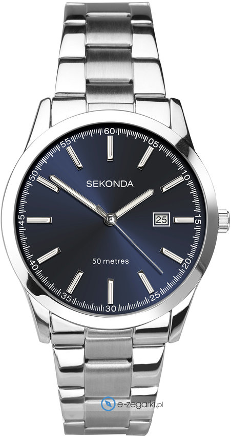 Zegarek męski 1943.00 marki Sekonda to dobra pozycja dla osób ceniących sobie dbałość o detale oraz bezawaryjne funkcjonowanie mechanizmów. Wysokiej trwałości cyferblat zegarka ozdobiono niebieskim kolorem. Zegarek ten pokazuje aktualny czas w formacie analogowym dzięki czemu odczyt jest bezproblemowy. Koperta jest w kolorze srebrnym szeroka jest na 43 mm oraz ma grubość 12 mm - w kształcie okrągłym.