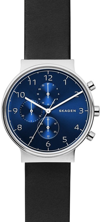 Model męski SKW6417 z serii Ancher marki Skagen. Tarcza zegarka w kolorze ciemnym.