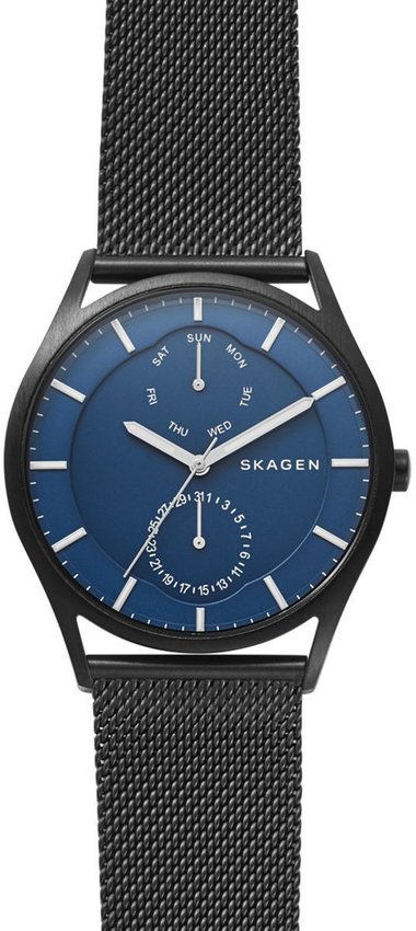 Zegarek męski SKW6450 marki Skagen to stylowe połączenie funkcjonalności i modnego designu. Model ten w gamie pozostałych zegarków tego producenta występuje w kolekcji Skagen Holst. Ciekawy wygląd czasomierza osiągnięto także dzięki tarczy w kolorze niebieskim. Koperta jest w kolorze czarnym szeroka jest na 40 mm oraz ma grubość 10 mm - w kształcie okrągłym.