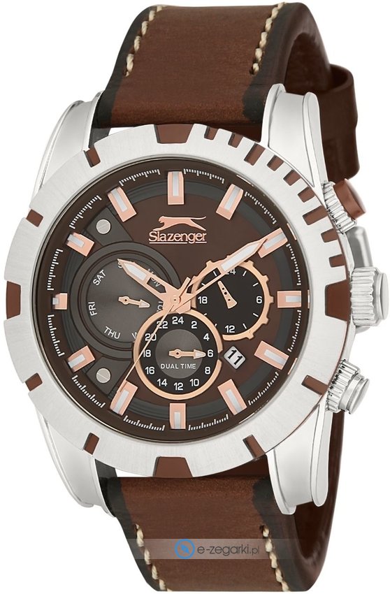 Zegarek męski SL.01.1164.2.02 marki Slazenger to dobra pozycja dla ludzi ceniących sobie dbałość o detale a także sprawne działanie mechanizmów. Tarcza zegarka w kolorze brązowym. Koperta została ozdobiona kolorem stalowym szeroka jest na 48 mm - posiada okrągły kształt.