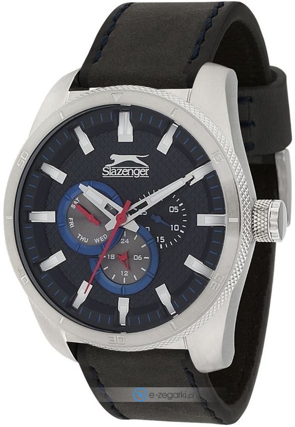 Zegarek męski SL.01.1247.2.02 marki Slazenger to idealne połączenie funkcjonalności a także ciekawego wzornictwa. Niebanalną stylistykę zegarka uzyskano dzięki tarczy w kolorze granatowym. Koperta jest w kolorze stalowym szeroka jest na 46 mm - posiada okrągły kształt.