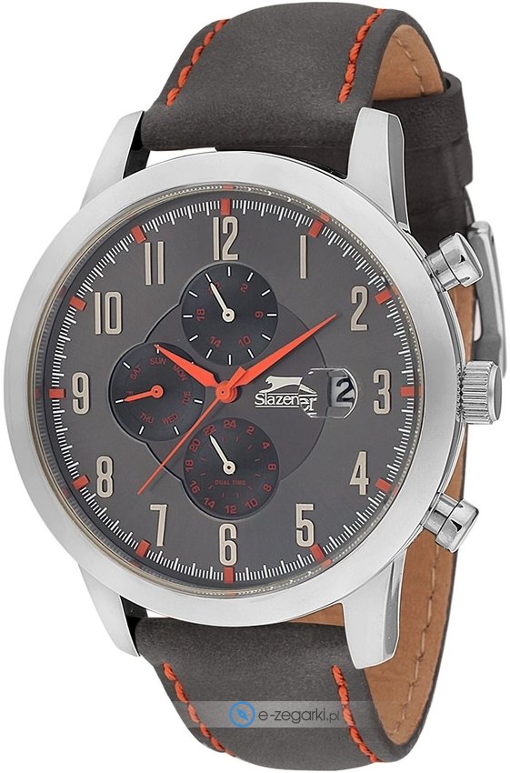 Model SL.09.1214.2.03 marki Slazenger to elegancki zegarek naręczny męski, który wyposażono w pomysłowe rozwiązania oraz funkcje. Stylu dodaje wysokiej jakości cyferblat w kolorze szarym. Koperta w barwach koloru stalowego szeroka jest na 45 mm - charakteryzuje się okrągłym kształtem.