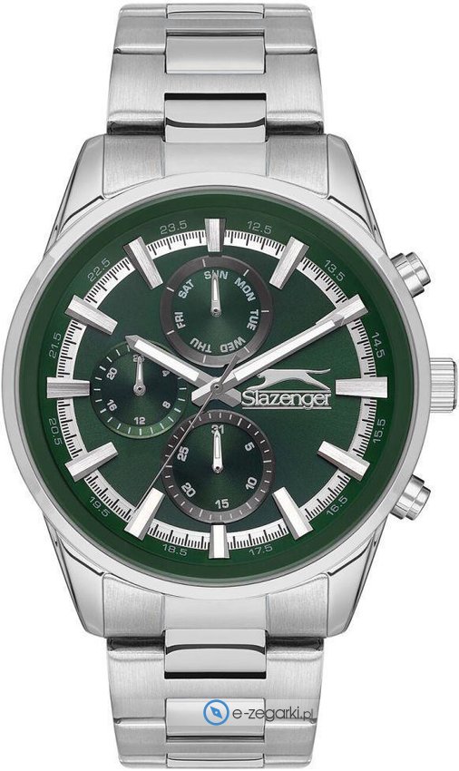 Zegarek męski SL.09.2242.2.05 marki Slazenger to dobra pozycja dla osób ceniących sobie dbałość o szczegóły oraz bezawaryjne zachowanie mechanizmów. Styl zapewnia wysokiej jakości cyferblat w kolorze zielonym. Zegarek ten pokazuje aktualny czas w formacie analogowym dzięki temu odczyt jest intuicyjny. Koperta w odcieniach koloru stalowego szeroka jest na 46 mm - ma okrągły kształt.