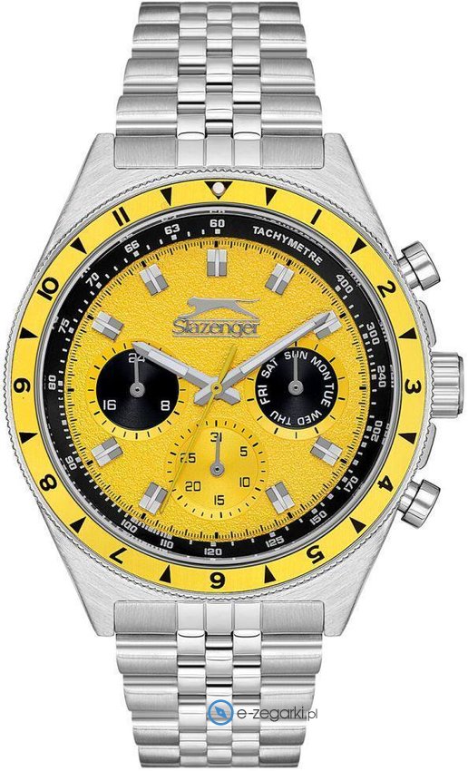 Zegarek męski SL.09.2248.2.04 marki Slazenger to idealne połączenie funkcjonalności oraz ciekawego designu. Niebanalną budowę czasomierza uzyskano dzięki tarczy w kolorze żółtym. Zegarek ten pokazuje godzinę w formacie analogowym dzięki temu odczyt jest intuicyjny. Koperta w barwach koloru stalowego szeroka jest na 45 mm - cechuje się okrągłym kształtem.