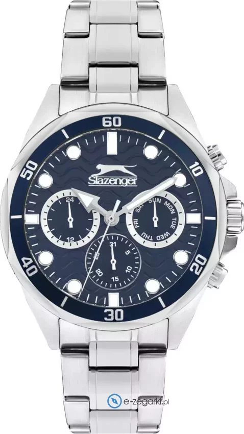 Model SL.09.2309.2.03 marki Slazenger to gustowny zegarek naręczny męski, który jest wyposażony w pomysłowe rozwiązania oraz funkcje. Tarcza zegarka jest w kolorze granatowym. Aktualna godzina przedstawiona jest w sposób analogowy co niezmiernie łatwo pozwala ją odczytać. Koperta została pokryta kolorem stalowym szeroka jest na 46 mm - posiada okrągły kształt.