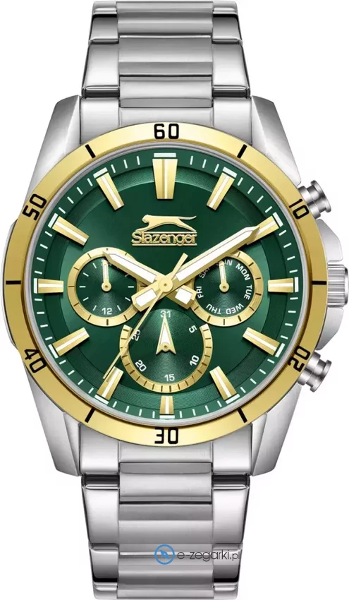 Zegarek męski SL.09.2332.2.04 marki Slazenger to dobra propozycja dla ludzi ceniących sobie dbałość o detale a także bezproblemowe działanie mechanizmów. Tarcza zegarka jest w kolorze zielonym. Aktualna godzina pokazywana jest w sposób analogowy co niezmiernie łatwo pozwala ją odczytać. Koperta szeroka jest na 45 mm - charakteryzuje się okrągłym kształtem.