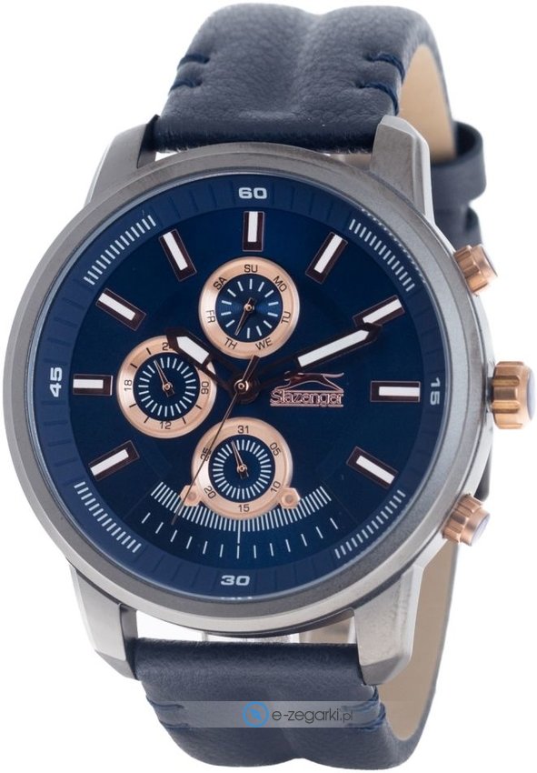 Zegarek męski SL.09.6098.2.04 marki Slazenger to idealne połączenie funkcjonalności a także modnego designu. Wysokiej jakości cyferblat zegarka ozdobiono granatowym kolorem. Koperta szeroka jest na 50 mm - posiada okrągły kształt.