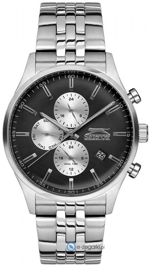Zegarek męski SL.09.6160.2.02 marki Slazenger to stylowe połączenie funkcjonalności a także modnego designu. Ciekawy wygląd czasomierza uzyskano poprzez tarczę w kolorze czarnym. Koperta w barwach koloru stalowego szeroka jest na 43 mm - posiada okrągły kształt.