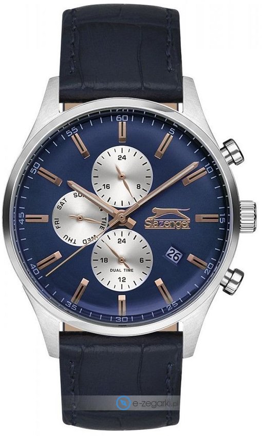 Model SL.09.6188.2.01 marki Slazenger to elegancki zegarek naręczny męski, który posiada pomysłowe rozwiązania oraz funkcje. Nieschematyczny wygląd czasomierza uzyskano dzięki tarczy w kolorze granatowym. Koperta jest w kolorze stalowym szeroka jest na 43 mm - w kształcie okrągłym.