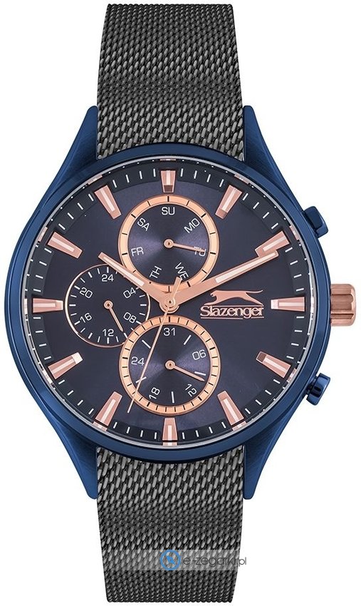 Model SL.09.6207.2.03 marki Slazenger to stylowy zegarek naręczny męski, który posiada pomysłowe rozwiązania i funkcje. Charakter zapewnia wysokiej jakości cyferblat w kolorze niebieskim. Godzina zaprezentowana jest w sposób analogowy co intuicyjnie pozwala ją odczytać. Koperta w odcieniach koloru niebieskiego szeroka jest na 45 mm - w kształcie okrągłym.
