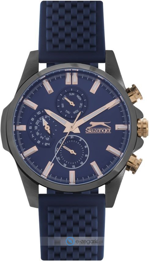 Zegarek męski SL.09.6209.2.03 marki Slazenger to stylowe połączenie funkcjonalności i ciekawego wzornictwa. Niebanalny wygląd czasomierza osiągnięto m.in. poprzez tarczę w kolorze granatowym. Aktualna godzina zaprezentowana jest w sposób analogowy co niezmiernie łatwo pozwala ją odczytać. Koperta jest w kolorze szarym szeroka jest na 44 mm - wyróżnia się okrągłym kształtem.