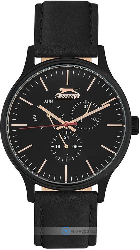 Zegarek męski SL.09.6224.2.01 marki Slazenger to dobre połączenie funkcjonalności a także ciekawego designu. Tarcza zegarka w kolorze czarnym. Pokazana metodą analogową aktualna godzina jest czytelna i łatwa do sprawdzenia. Koperta jest w kolorze czarnym szeroka jest na 43 mm - w kształcie okrągłym.