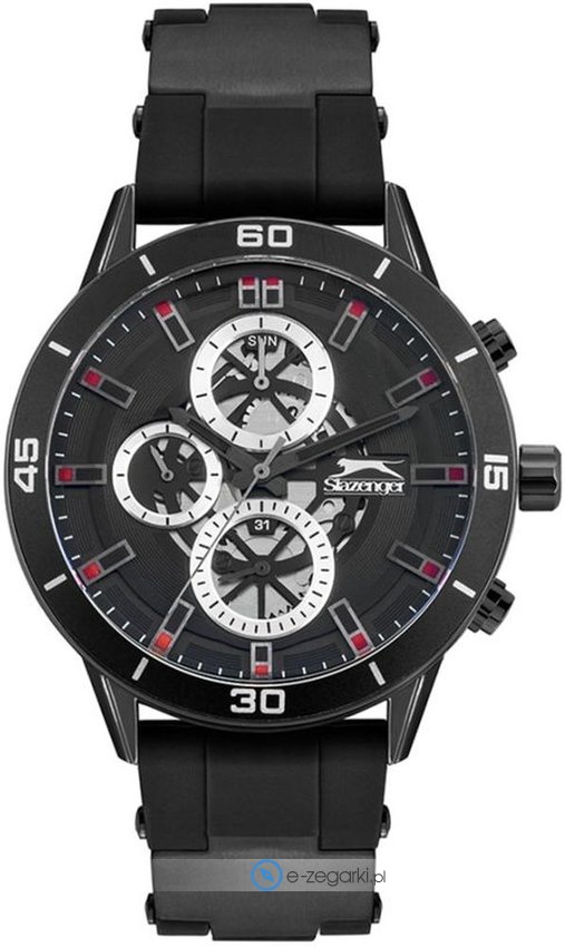 Zegarek męski SL.09.6262.2.01 marki Slazenger to stylowe połączenie funkcjonalności a także ciekawego wzornictwa. Niebanalną konstrukcję czasomierza uzyskano dzięki tarczy w kolorze czarnym. Aktualna godzina zaprezentowana jest w sposób analogowy co bez trudu pozwala ją odczytać. Koperta w barwach koloru stalowego szeroka jest na 45 mm - posiada okrągły kształt.