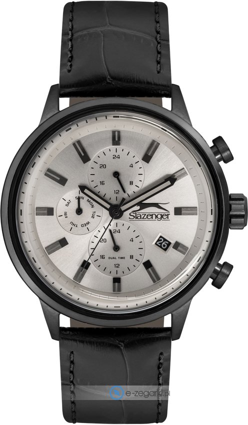 Model SL.09.6289.2.03 marki Slazenger to gustowny zegarek naręczny męski, który wyposażono w pomysłowe rozwiązania oraz funkcje. Stylu nadaje wysokiej jakości cyferblat w kolorze srebrnym. Aktualna godzina prezentowana jest w sposób analogowy co bez trudu pozwala ją odczytać. Koperta jest w kolorze czarnym szeroka jest na 45 mm - w kształcie okrągłym.