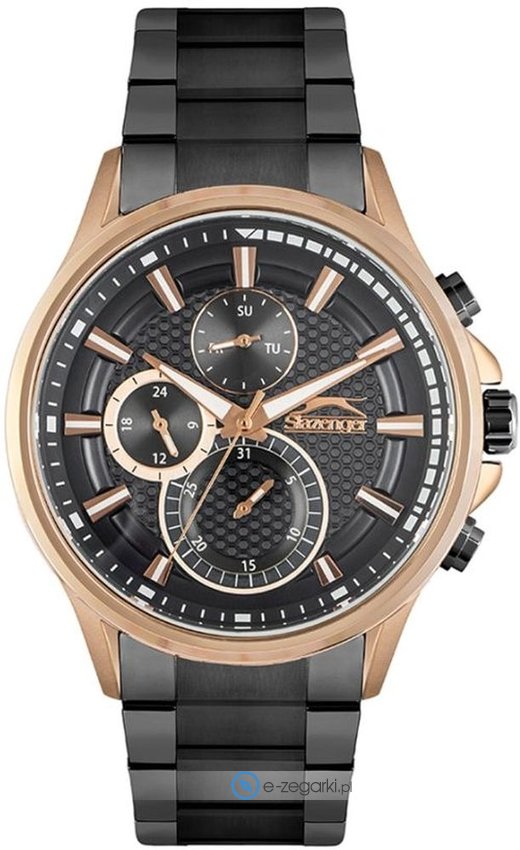Zegarek męski SL.09.6294.2.02 marki Slazenger to dobra pozycja dla osób ceniących sobie dbałość o szczegóły jak również bezawaryjne działanie mechanizmów. Stylu dodaje wysokiej jakości tarcza w kolorze czarnym. Aktualna godzina zaprezentowana jest w sposób analogowy co niezmiernie łatwo pozwala ją odczytać. Koperta jest pokryta kolorem stalowym szeroka jest na 47 mm - w kształcie okrągłym.