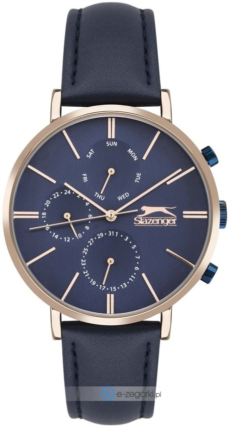 Męski zegarek Slazenger SL.09.6384.2.04 to zegarek, który dzięki swemu wzornictwu zawsze będzie prezentował się dobrze. Atrakcyjną konstrukcję czasomierza osiągnięto dzięki tarczy w kolorze niebieskim. Godzina zaprezentowana jest w sposób analogowy co bez trudu pozwala ją odczytać. Koperta jest w kolorze różowo złotym szeroka jest na 42 mm - posiada okrągły kształt.