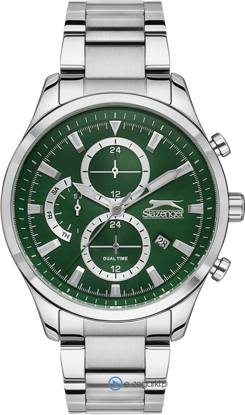 Zegarek męski SL.09.6511.2.04 marki Slazenger to idealna pozycja dla osób ceniących sobie dbałość o szczegóły oraz bezawaryjne zachowanie mechanizmów. Charakter zapewnia wysokiej jakości cyferblat w kolorze zielonym. Zegarek ten prezentuje aktualny czas w formacie analogowym dzięki temu odczyt jest intuicyjny. Koperta w odcieniach koloru srebrnego szeroka jest na 45 mm - posiada okrągły kształt.