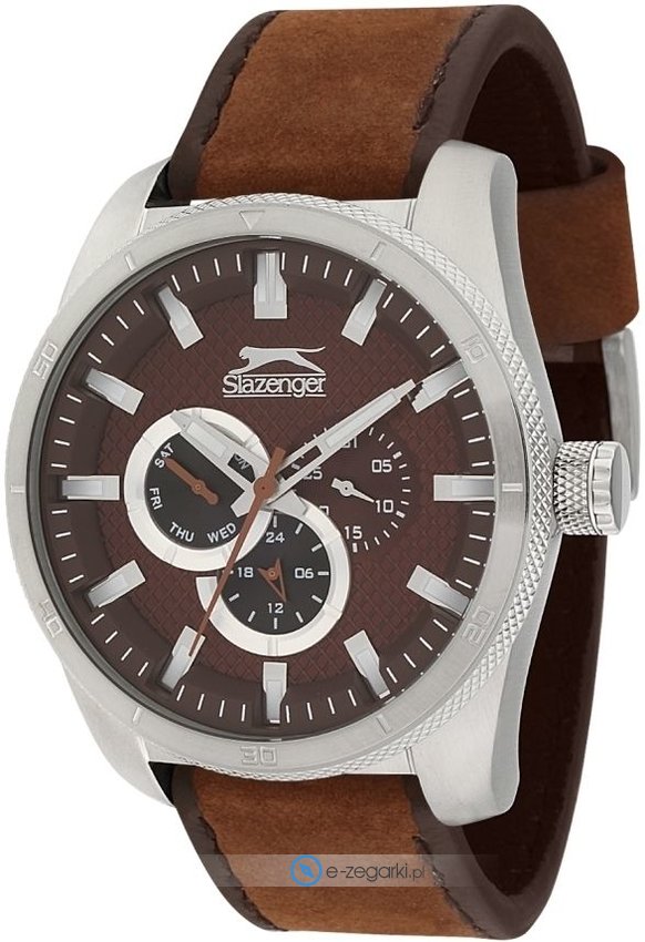 Zegarek męski SL.1.1247.2.04 marki Slazenger to idealne połączenie funkcjonalności i ciekawego designu. Ciekawy wygląd czasomierza uzyskano dzięki tarczy w kolorze brązowym. Koperta w barwach koloru stalowego szeroka jest na 46 mm - charakteryzuje się okrągłym kształtem.