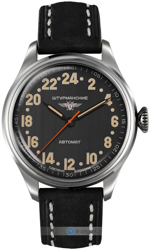 Model 2431-6821341 marki Sturmanskie to gustowny zegarek naręczny męski, który posiada pomysłowe rozwiązania i funkcje. Aktualna godzina przedstawiona jest w sposób analogowy co niezmiernie łatwo pozwala ją odczytać. Koperta szeroka jest na 42 mm oraz ma grubość 13 mm - w kształcie okrągłym.