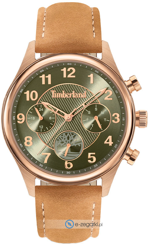 Zegarek męski TBL.TDWLF2200101 marki Timberland to dobre połączenie funkcjonalności oraz modnego wzornictwa. Wysokiej jakości cyferblat zegarka pokryto zielonym kolorem. Zaprezentowana metodą analogową bieżąca godzina jest czytelna i szybka do sprawdzenia. Koperta w odcieniach koloru różowo złotego szeroka jest na 40 mm - w kształcie okrągłym.