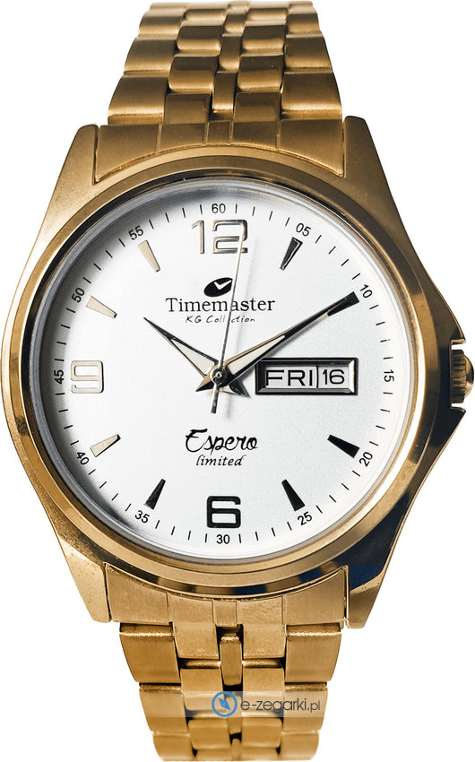 Zegarek 109-01 marki Timemaster to elegancki zegarek naręczny męski, który jest wyposażony w ciekawe rozwiązania oraz funkcje. Model ten pochodzi z serii Timemaster Espero Limited. Niebanalną konstrukcję czasomierza osiągnięto dzięki tarczy w kolorze złotym. Koperta jest w kolorze srebrno złotym szeroka jest na 37 mm oraz ma grubość 9 mm.