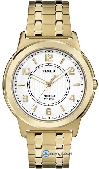 Zegarek męski TW2P62000 marki Timex to dobra propozycja dla ludzi ceniących sobie dbałość o detale a także bezproblemowe działanie mechanizmów. Cyferblat zegarka jest w kolorze białym. Zegarek ten prezentuje aktualny czas w formacie analogowym dzięki czemu odczyt jest bezproblemowy. Koperta jest pokryta kolorem złotym szeroka jest na 40 mm oraz ma grubość 10 mm - ma okrągły kształt.