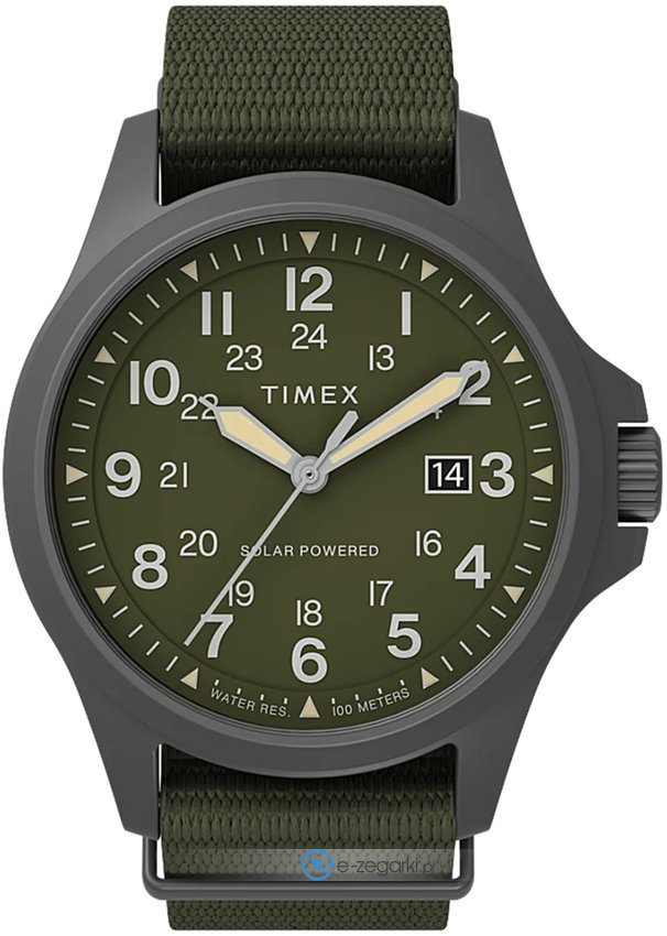 W zegarku TW2V03700 zastosowano mechanizm solarny zasilany jakimkolwiek źródłem światła. Pasek koloru zielonego zrobiony jest z wysokiej jakości materiałów.