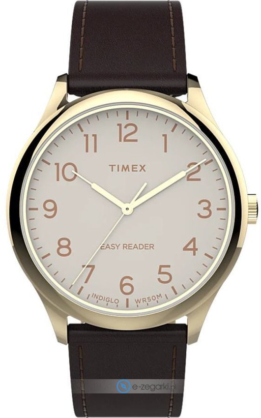 Model TW2V28100 marki Timex to gustowny zegarek naręczny męski, który jest wyposażony w ciekawe rozwiązania oraz funkcje. Tarcza zegarka jest w kolorze beżowym. Zegarek ten prezentuje godzinę w formacie analogowym dzięki czemu odczyt jest bardzo łatwy. Koperta w odcieniach koloru złotego szeroka jest na 40 mm oraz ma grubość 12 mm - posiada okrągły kształt.