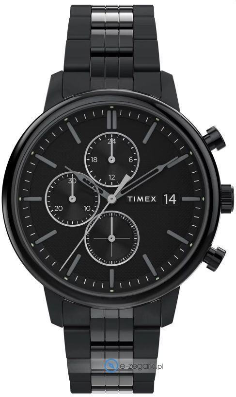 Zegarek męski TW2W13400 marki Timex to dobre połączenie funkcjonalności oraz modnego designu. Cyferblat zegarka jest w kolorze czarnym. Zaprezentowana metodą analogową bieżąca godzina jest czytelna i łatwa do sprawdzenia. Koperta w barwach koloru czarnego szeroka jest na 45 mm oraz ma grubość 11 mm - wyróżnia się okrągłym kształtem.